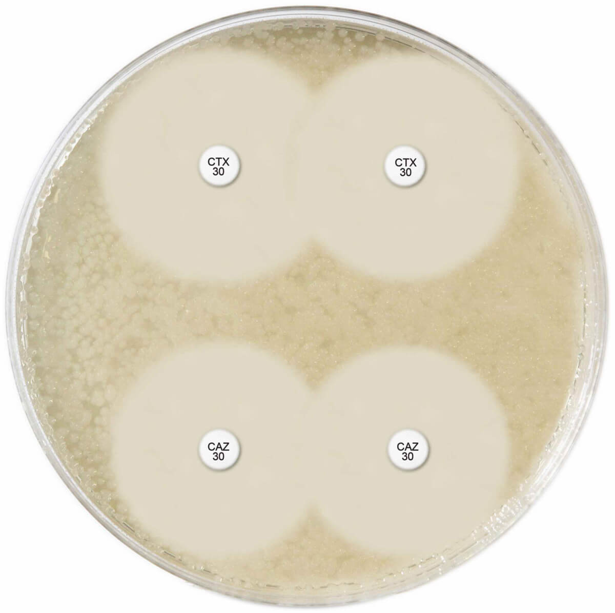 - Ceftazidime 30µg discs + Clavulanic acid 10µg discs (x3)