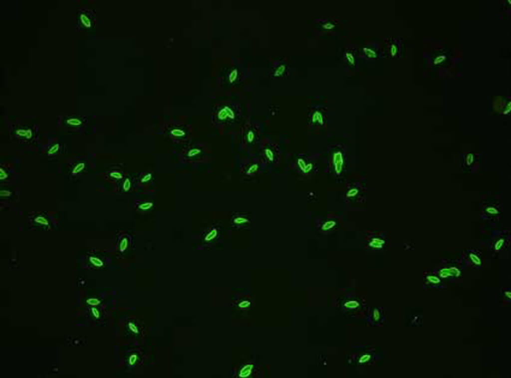 MASTAFLUOR® Toxoplasma slides and kits provide an immunofluorescence test system for the detection of specific antibodies to Toxoplasma gondii in human serum to aid the confirmation and diagnosis of Toxoplasma infection.