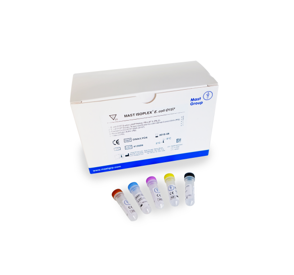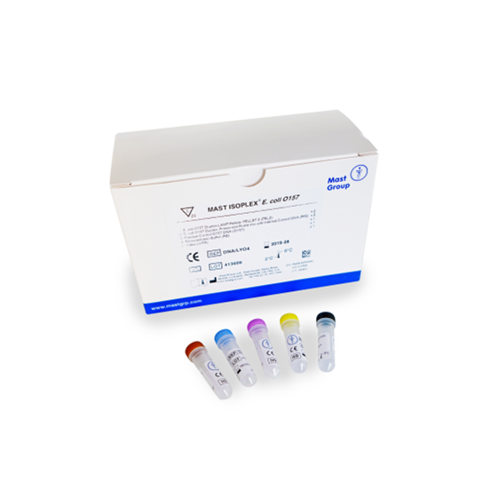 MAST ISOPLEX®E.coli O157 kit is optimised for typing of O157 E.coli . The kit contains reagents for detection of Perosamine synthetase (RfbE) expressed by E.coli O157. E.coli O157 genes can be detected simultaneously in a duplex assay format with an inhibition control DNA (IC DNA).