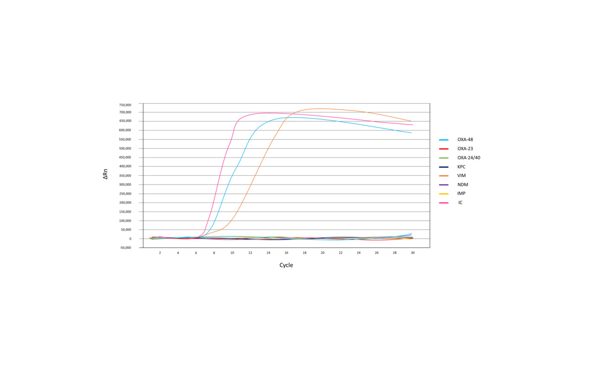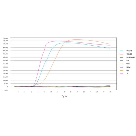 The assay consists of an 8-tube strip, whereby each of the 7 specific carbapenemase targets occupies its own tube, as does the inhibition control. Extracted DNA is added to each tube in the strip to allow the simultaneous testing of all 7 carbapenemase families. The test offers a rapid turnaround with only 15 minutes of sample preparation (including a quick boil and spin extraction) followed by a 30 minute run time.