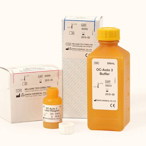 The latex reagent for the quantitative measurement of haemoglobin in faeces using OC-SENSOR iO immunochemical analyser.